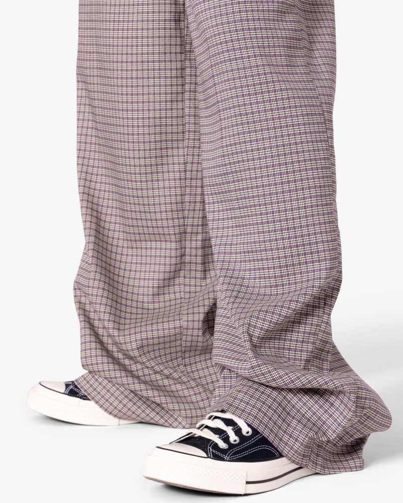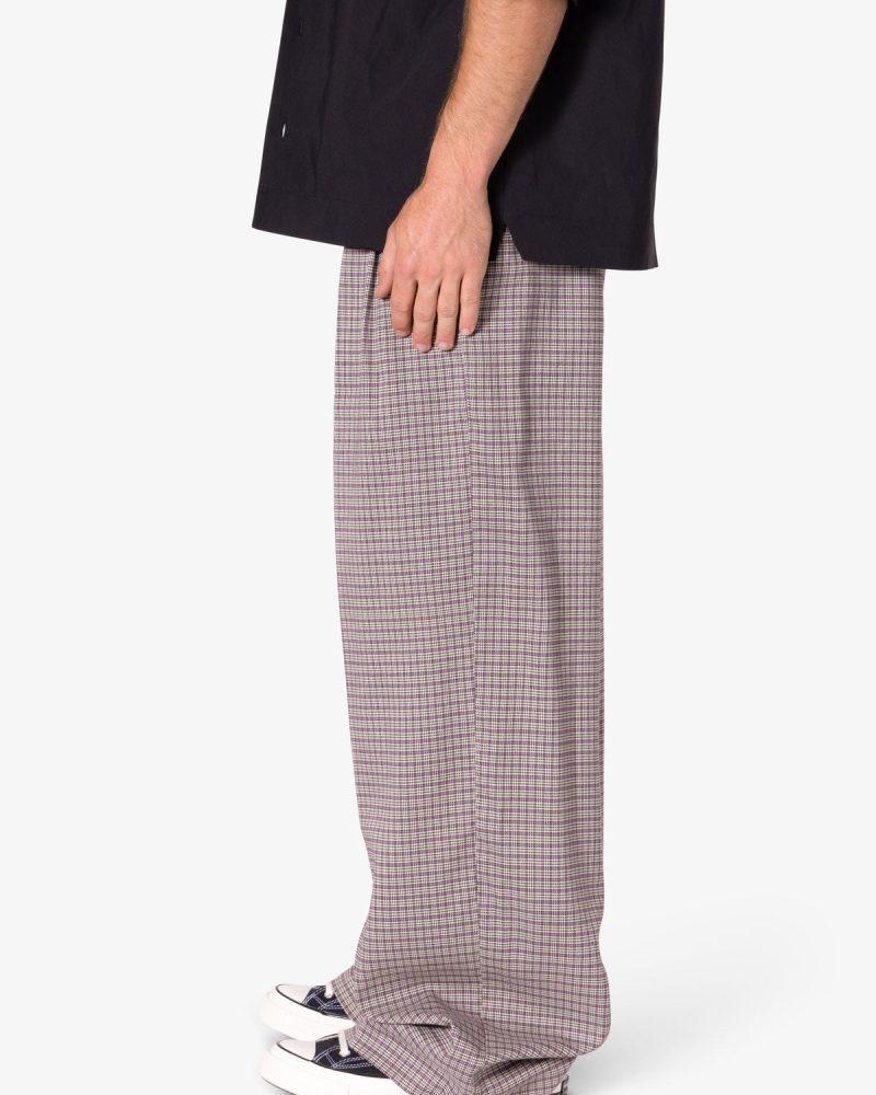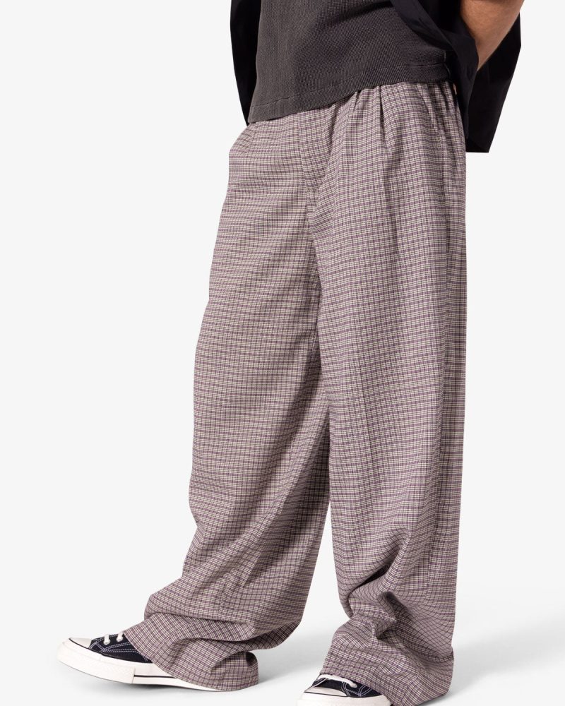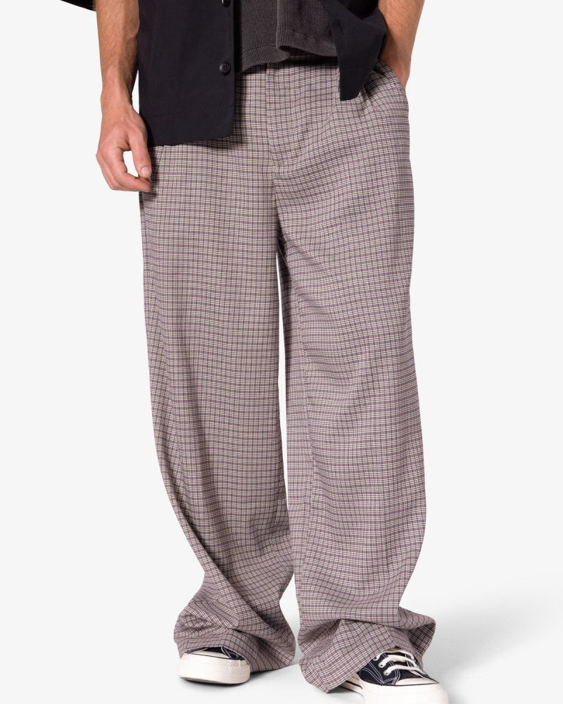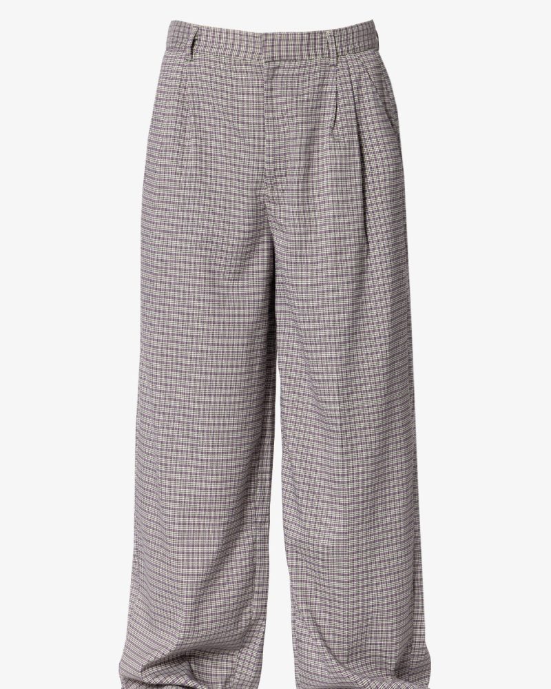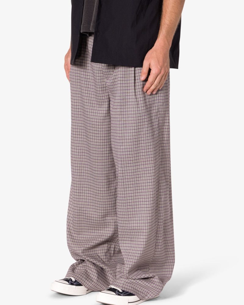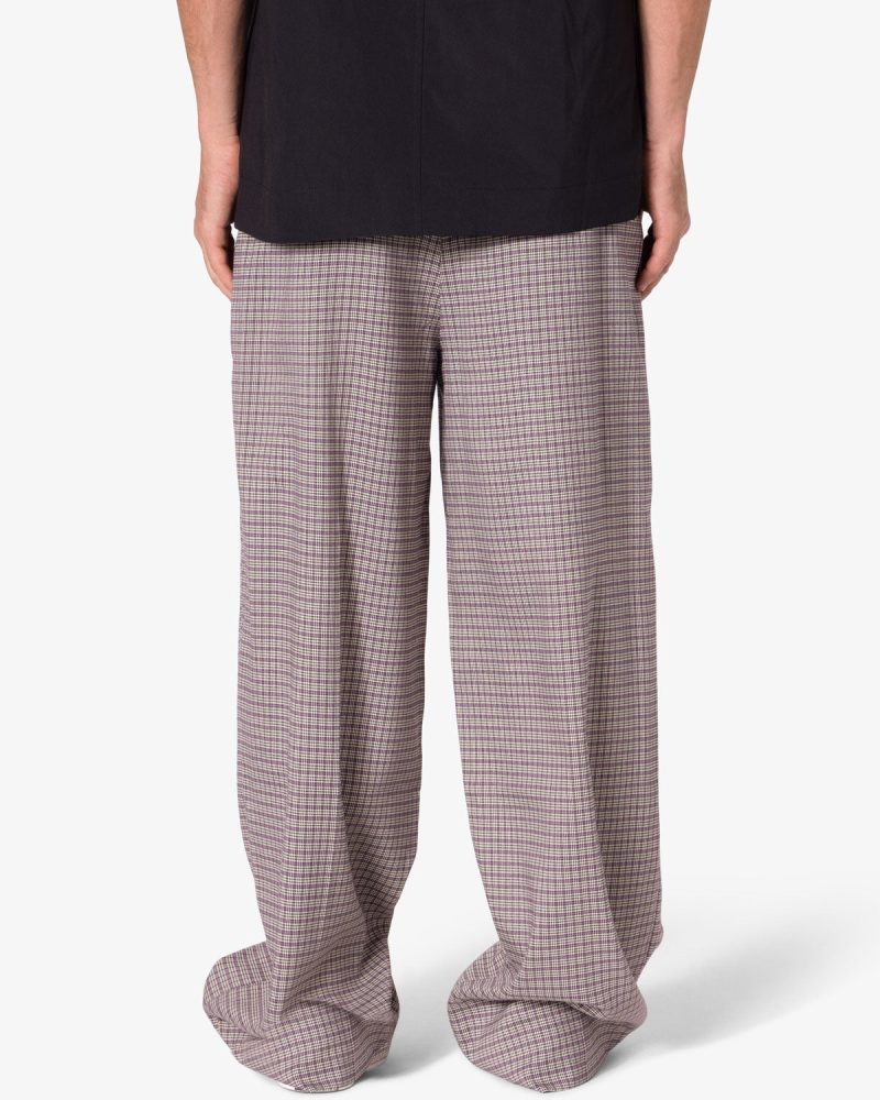 the Wide Leg Trouser Pants are designed with a baggy. relaxed fit throughout. featuring welt pockets at the outseam and patch pockets on the back. and is constructed from a custom developed striped cotton fabric.