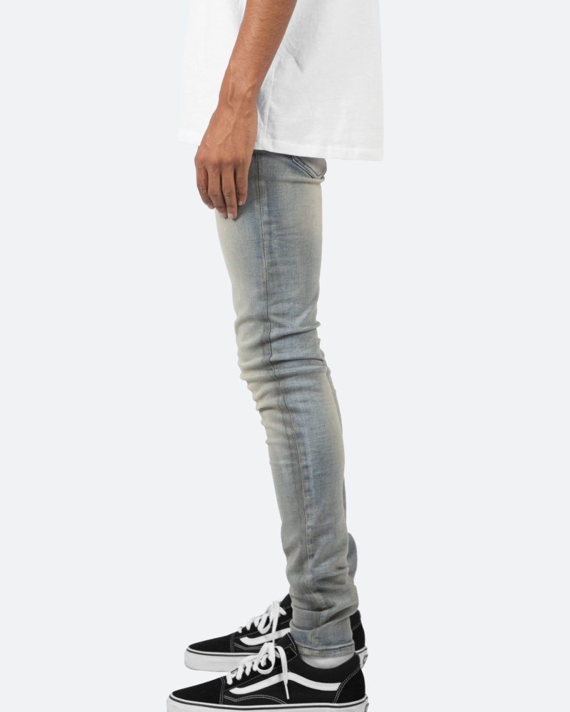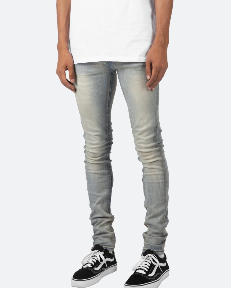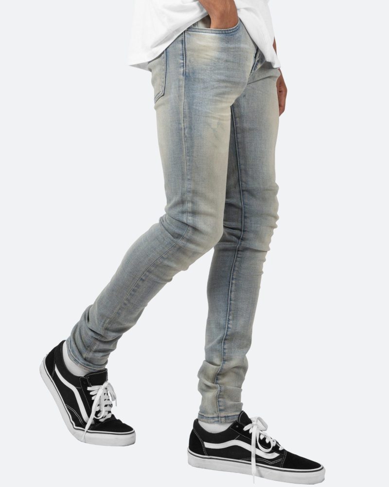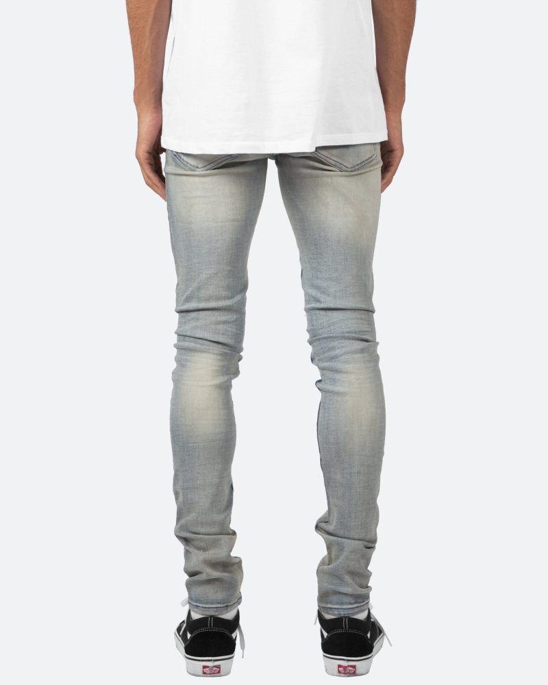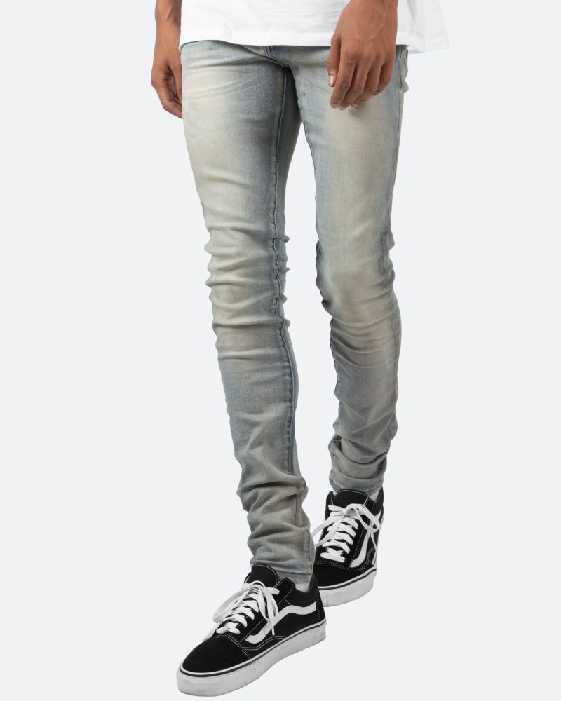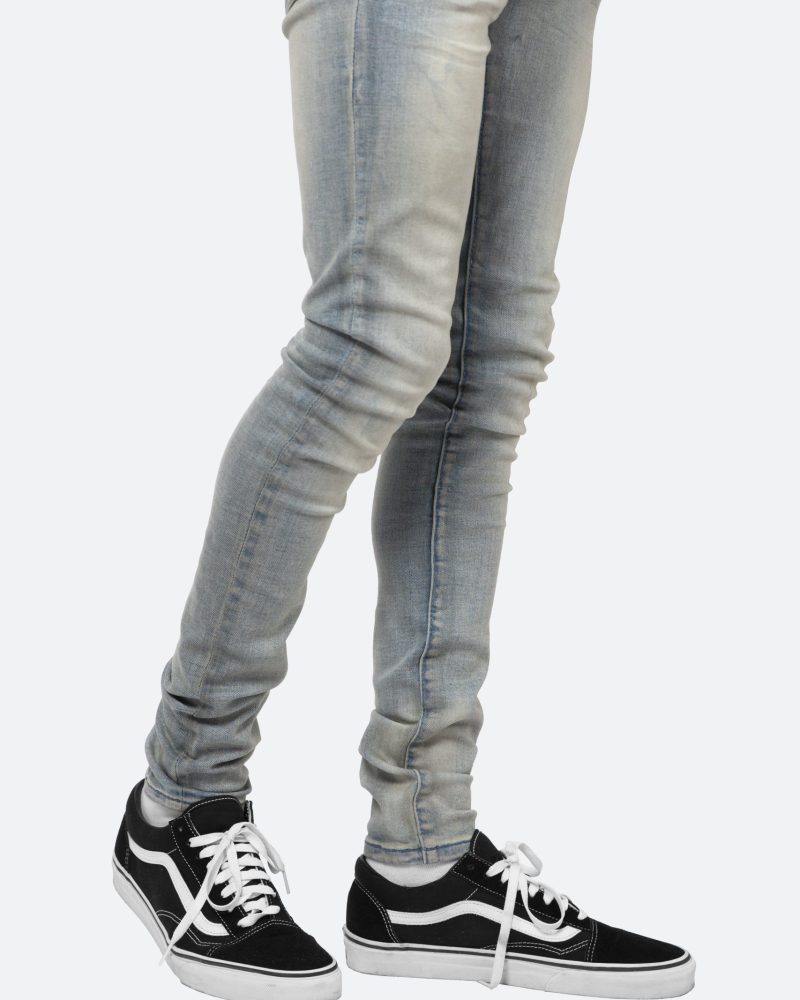 the X20 Stretch Denim is designed with our new X fit which is skinny throughout with an extended inseam for stacking. and features a medium wash and sanding throughout.