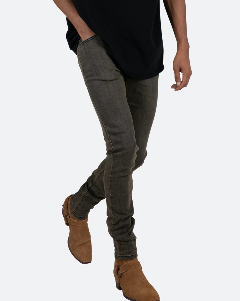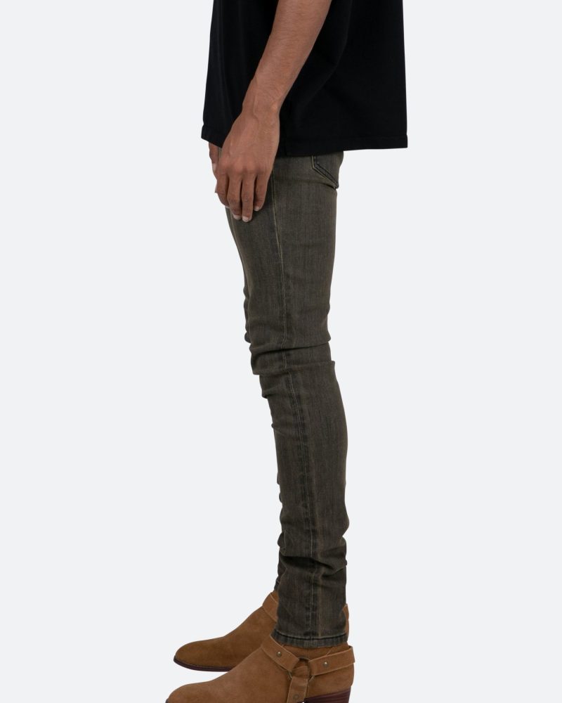 the X461 Stretch Denim is designed with our new X fit which is skinny throughout with an extended inseam for stacking. and finished in a vintage grey washed denim.