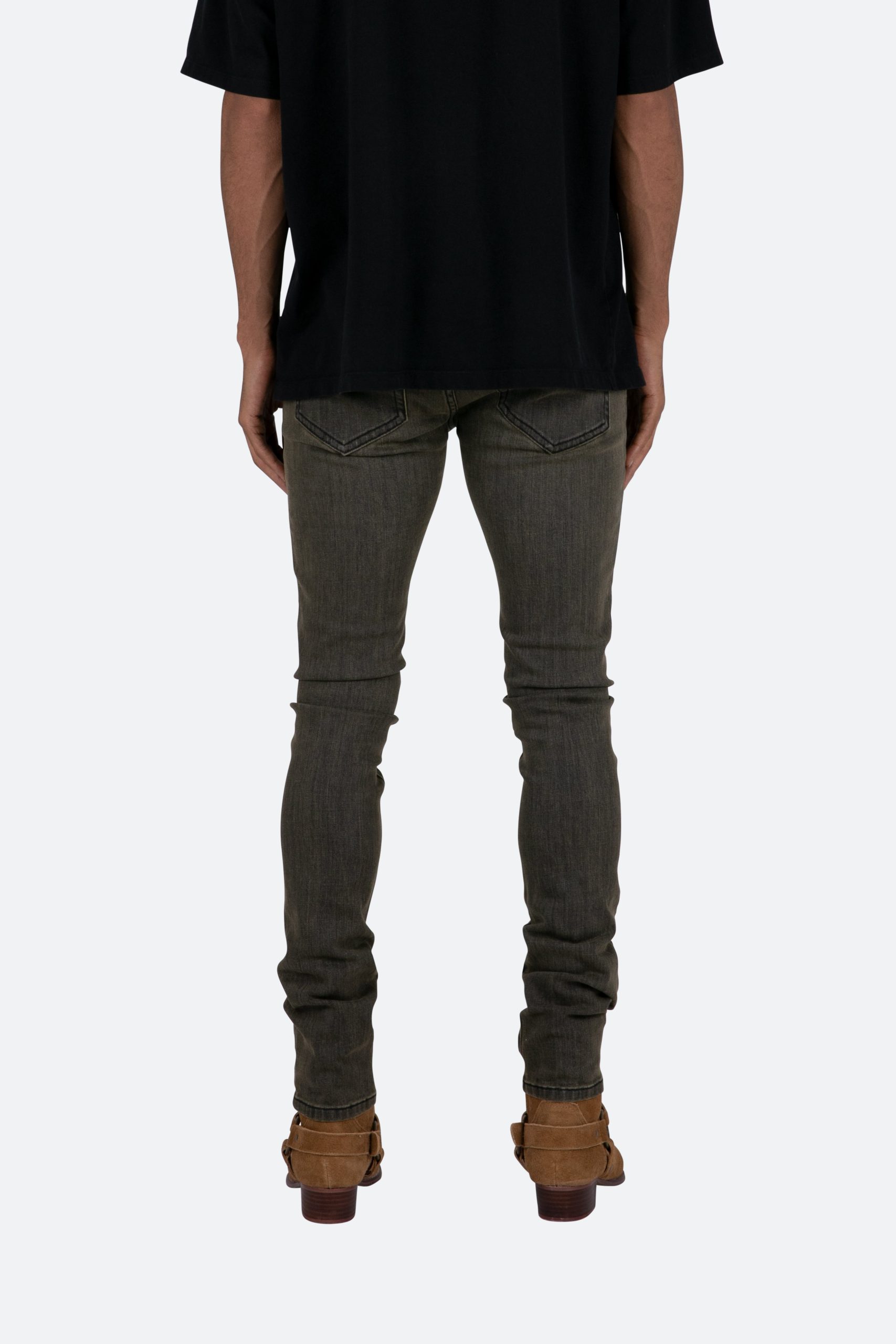 the X461 Stretch Denim is designed with our new X fit which is skinny throughout with an extended inseam for stacking. and finished in a vintage grey washed denim.